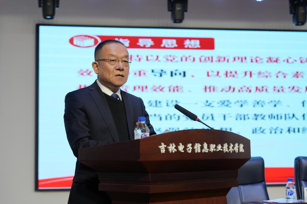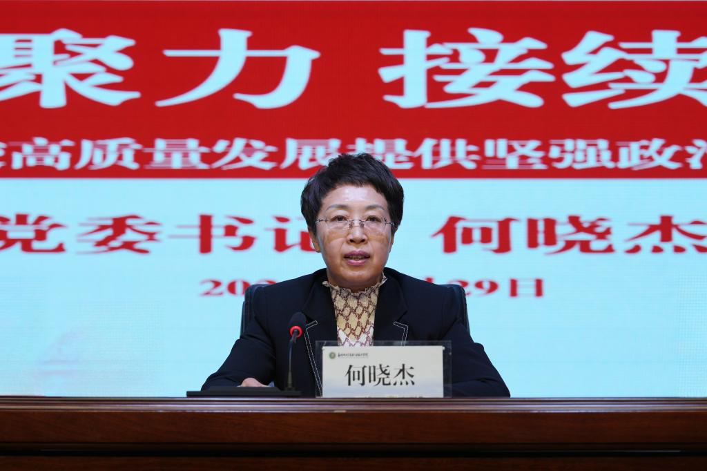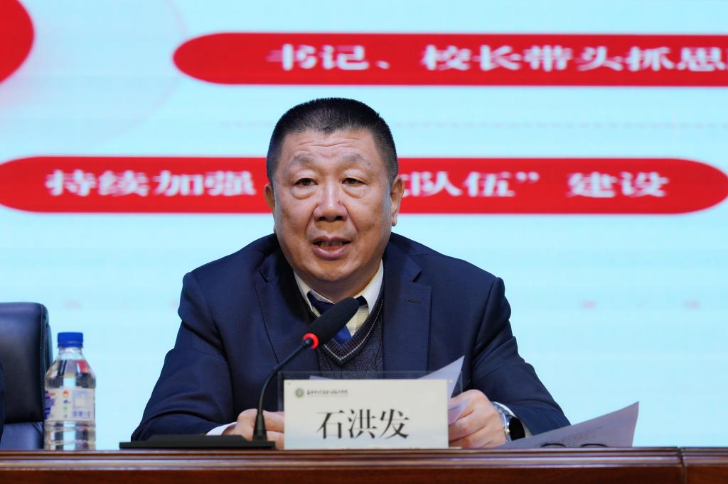 党委副书记石洪发作2024年学校党建和思想政治工作报告。报告回顾总结了2023年学校党建和思想政治工作取得的新成效,围绕学校“12345”特色化内涵式工作思路,全面部署了2024年学校党建和思想政治工作重点任务。