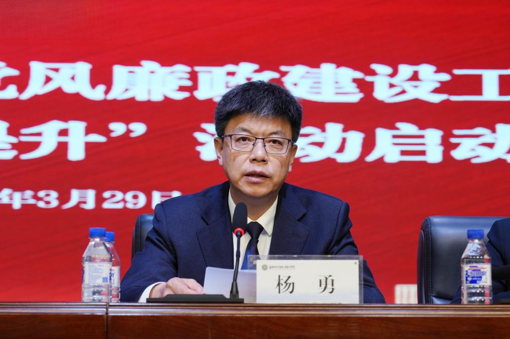 3月29日,学校2024年党建与党风廉政建设工作会议暨“两抓两强两提升”活动启动大会在青春剧场召开。学校领导班子成员出席会议,两委委员、科级以上干部、党总支纪检委员、党支部书记、全体学工人员、思政课教师、党委职能部门工作人员以及重点岗位人员和教师代表参加会议。会议由党委副书记、校长杨勇主持。