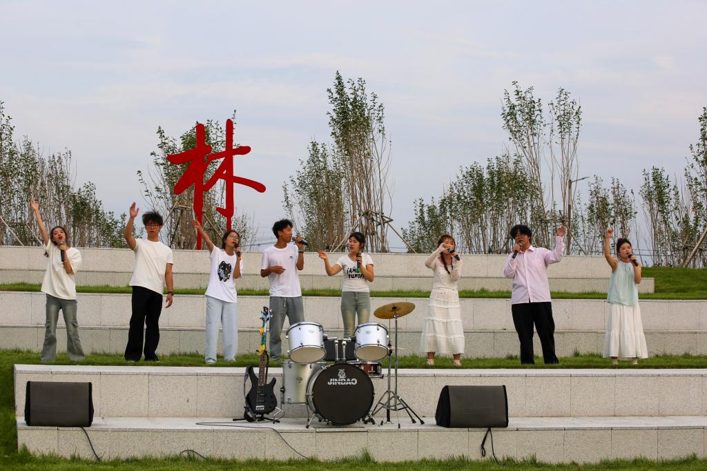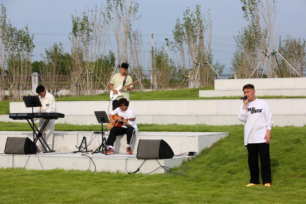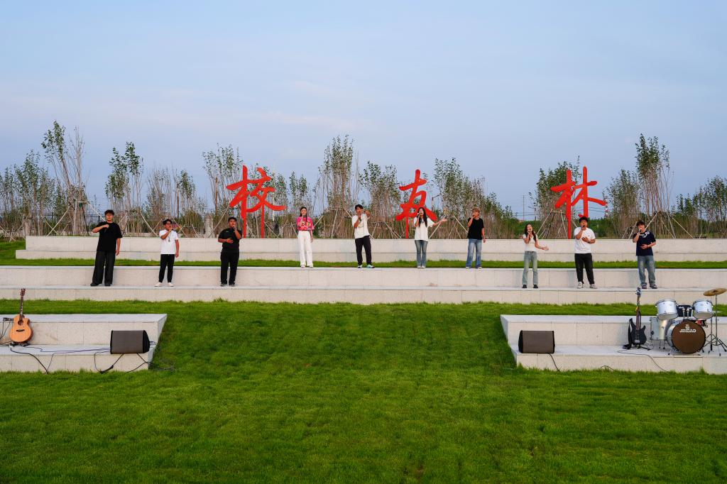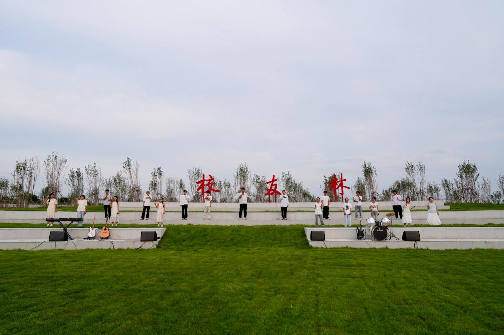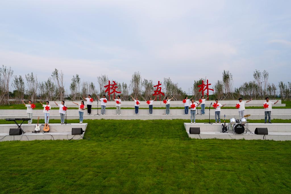 校友林地标区白鸽漫步、风筝飘扬,歌曲《理想》《小美满》《仰望星空》《青春印记》《未来我来》、器乐演奏《笑傲江湖》、乐队表演《我相信》等节目以青春旋律唱响时代强音,倾情展现了学校师生向上向善的精神风貌,充分彰显了师生艺术素养和五育融合成果。
